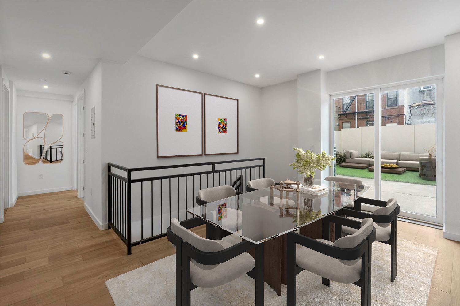 Welcome to Unit 1B at The Genesis, a boutique new condominium building located in thriving nexus of Gowanus. This bright and south facing 2-bedroom, 2.5 bathroom offers modern elegance and exceptional craftsmanship. Get ready to enjoy 2026 in this duplex unit with approximately 1371sf of interior space and 1000sf of private backyard space! Designed for both comfort and style, this unit features a bright and inviting living space with floor-to-ceiling windows that flood the home with southern natural light! The open-concept chef’s kitchen is equipped with Caesarstone countertops and integrated custom cabinetry, seamlessly blending functionality with modern aesthetics. Head downstairs to your 500sf multifunction recreation room, equipped with an additional powder room. The primary suite easily accommodates a king-sized bed and includes a spa-like en-suite bathroom, as well as a walk-in closet. The second bedroom easily fits a queen size bed and features ample closet space. Lastly, soak up the sun this upcoming summer in your massive private backyard. With approx 1,000sf of outdoor space, there's plenty of room for gardening, lounging and entertaining with unobstructed sunlight throughout the day. The Genesis offers residents a boutique luxury experience in a vibrant up and coming neighborhood. This elevator building features a gorgeous common roof deck with panoramic skyline views, a bike room and a virtual doorman. Conveniently located in close proximity to both Carroll Gardens and Park Slope, the neighborhood is a foodies dream. You can stay local at Alma Negra or Four & Twenty Blackbirds, venture west to Frankies Spuntino or walk east a few blocks to Michelin-rated Lore. Plus, with easy access to the D, N, R, F, and G trains, you can reach Manhattan in just 24 minutes.