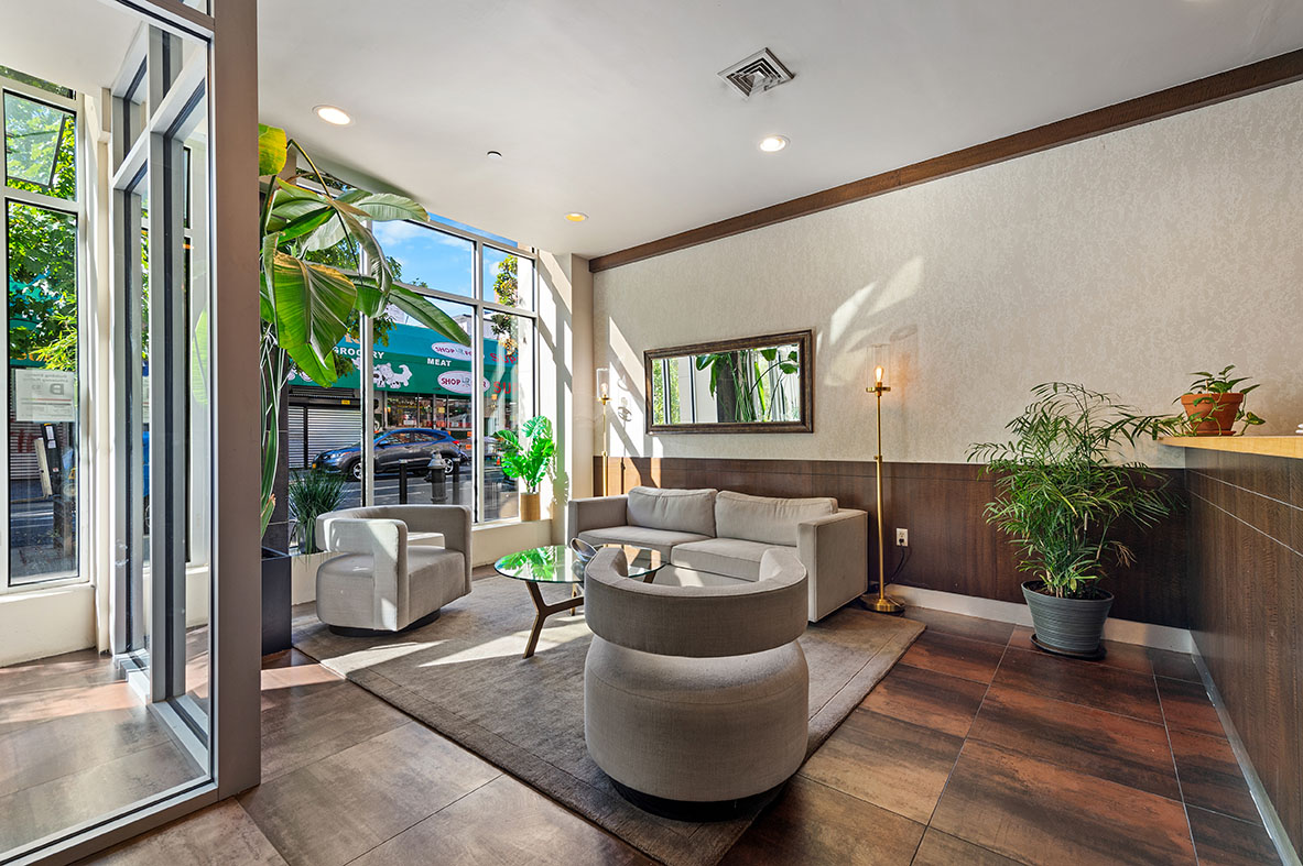 Welcome to Unit #5C at The Mirada! This spacious 1-bedroom 1-bathroom features an open living space, king-sized bedroom and a private balcony making this the perfect apartment to entertain or relax. The kitchen is a home-chef's dream featuring a large kitchen island, stainless steel appliances including a gas range stove, and ample cabinetry storage. The kitchen looks out onto the open living room space, filled with natural light with your private balcony that overlooks calming greenery. This unit additionally features high ceilings, oversized windows, custom bookshelves and Miele washer/dryer. The king-sized bedroom features a custom walk-in closet in addition to built-ins within the bedroom, allowing for ample storage for all your needs. The Mirada is a beautiful full-service condo equipped with 24-hour concierge service, a landscaped rooftop terrace with stunning city views, bike storage, a fitness room, and a parking garage, all only a half block away from the 110th 6 Train.